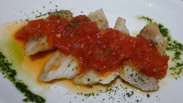 本日の魚料理 『白身魚のポワレ トマト&バジリコソースでイタリア風』 漁港直送の魚は柔らかくて美味しいし、ソースとの相性は抜群!ウマウマ♪